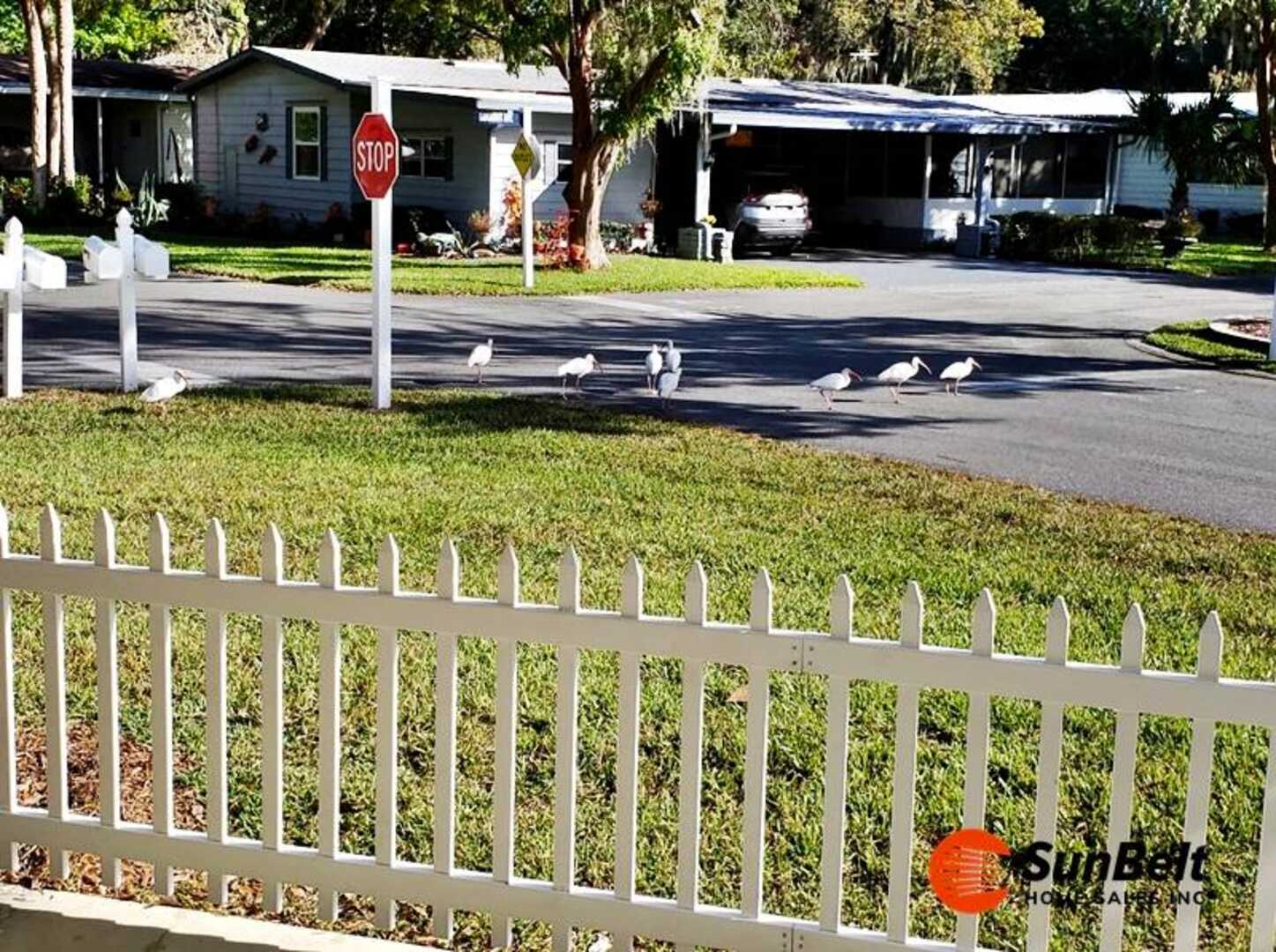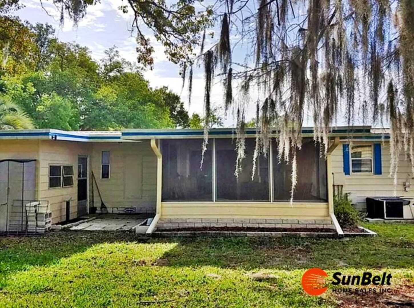 Beautifully Remodeled, Light-Filled Home in Premier 55+ Ocala Community This unique, light and airy home has been completely remodeled and is move-in ready, offering an open floor plan designed to capture the best of the Florida lifestyle. With an abundance of windows from front to back, the home is filled with natural light and showcases peaceful views of the park and pond from the welcoming front porch. A rare, oversized carport and curved front driveway provide ample space for multiple vehicles and a golf cart-perfect for an active lifestyle. Situated on one of the nicest corner lots in the community, this two-bedroom, two-bath home features a very spacious master suite with a newer 2025 vanity, walk-in shower, and large lanai overlooking the quiet backyard. The generous living areas include a large family room with wet bar, a cozy yet open kitchen, two flexible dining areas (ideal for an office or den), and a 14'' x 12'' screened lanai perfect for relaxing or entertaining. Built-ins throughout the home offer excellent storage and display space. Extensive upgrades provide peace of mind, including new subfloors and laminate flooring throughout. (2021), new HVAC and ductwork with remaining warranty (2021), upgraded PEX plumbing, remodeled kitchen (2025) with new appliances, updated bathrooms, exterior paint (2022), and much more. An attached 12'' x 10'' storage/laundry shed adds even more convenience. Located in a friendly and well-maintained 55+ resort-style community in Ocala Florida, residents enjoy their day with three heated swimming pools, saunas, pickleball, tennis, shuffleboard, an 18-hole golf course, 2 clubhouses, hobby rooms, and endless social activities. The lot fee includes water, sewer, trash pickup, lawn care, and full access to all amenities-leaving only electric and internet to pay. This versatile home truly lives large and offers the perfect balance of tranquility and active resort living. Come expe